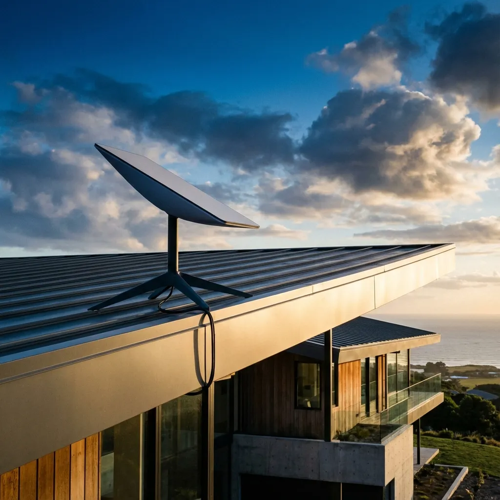 도시 외곽이나 산간에서도 사용 가능한 위성 기반 초고속 인터넷입니다.